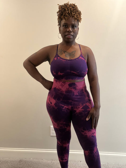 2-Piece Sports Bra & Legging Set - Dark Pink/Purple